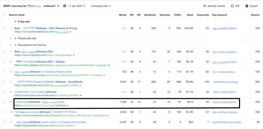 We started by digging deep into keyword research to find the hidden gems – the ones the big guys weren’t focusing on. In this niche with such massive competitors, nearly every keyword was competitive, but we analyzed their content and identified weaknesses to attack.